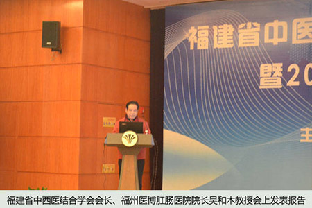 会上,福建省中西医结合学会会长、福州医博肛肠医院院长吴和木教授应福建省中医药学会的邀请做了《专科医院发展的桎梏与机遇》专题报告。吴和木教授指出,肛肠科从之前的普外科中的一个分科、到独立的学科、到现在的专科医院,甚至全国连锁的肛肠专科医疗机构,标志着肛肠科的学术地位不断提高。我们肛肠科医生要珍惜这来之不易的地位和成果,兢兢业业为广大老百姓提供专业的医疗服务。同时,吴和木也代表医博肛肠医院全体医务工作人员,在肛肠科科学检查、规范诊疗、术后病愈指导等方面做出表率。也要求作为全国连锁的医疗机构--福州医博肛肠医院要再接再厉,努力做好福建肛肠专科医院的标杆。